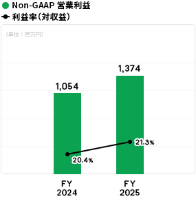 これらの結果、収益は30,309百万円(前期比7.2%増)、営業利益は4,239百万円(前期比35.4%増)、Non-GAAP営業利益は4,414百万円(前期比38.1%増)、税引前当期利益は4,718百万円(前期比3.1%減)、当期利益は3,490百万円(前期比36.8%減)、親会社の所有者に帰属する当期利益は3,491百万円(前期比36.8%減)となりました。