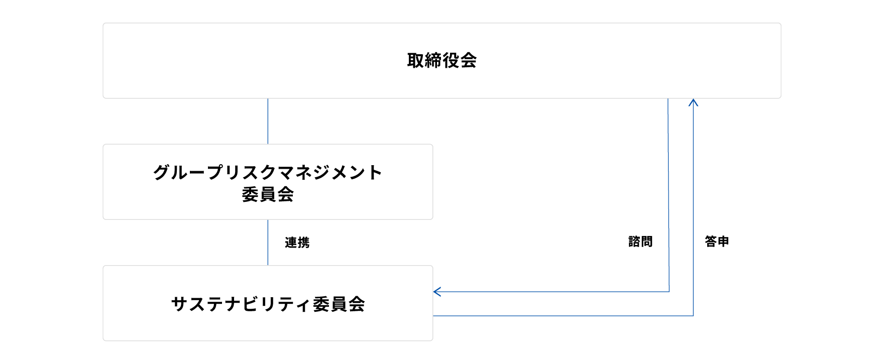 当社グループでは、取締役会の任意の諮問機関であり、グループ社長執行役員が委員長を務めるサステナビリティ委員会にて、サステナビリティ活動および人権課題についての議論・検討を行っています。また、人権課題についてはグループ全体のリスクを管理するグループリスクマネジメント委員会と連携しています。委員会での議論、検討内容は定期的に取締役会に報告するとともに、特に重要なテーマに関する決定については取締役会での決議を経ています。