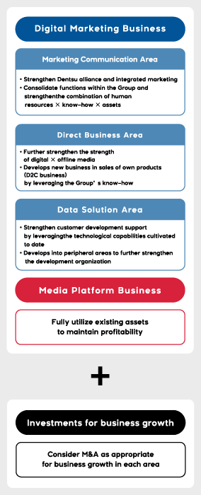 In addition to promoting area management across our three segments—Marketing Communication, Direct Business, and Data & Solutions—we will pursue and execute proactive M&A and alliances focused on expanding into consulting area and content area within our Marketing Communication Segment, aiming to expand our capabilities as a group.