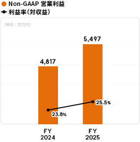 当期においては、オフライン広告案件を中心に収益が大きく拡大したことで、収益は6,439百万円(前年同期比24.4%増)、Non-GAAP営業利益は1,374百万円(前年同期比30.3%増)の増収増益となりました。
