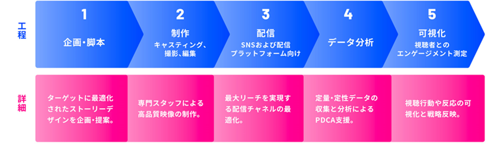 今後は、ブランデッドコンテンツの企画・制作にとどまらず、ショートドラマから派生する切り抜き動画などのフォーマットにも対応していきます。さらに、プロダクトプレイスメントをはじめとする広告プロモーション手法の確立や企業アカウントのIP化によるブランド戦略の展開も視野に入れています。テクノロジーの活用を軸に、事業展開を本格化およびパートナー企業との協業拡大を図り、顧客のマーケティング活動を伴走していきます。
